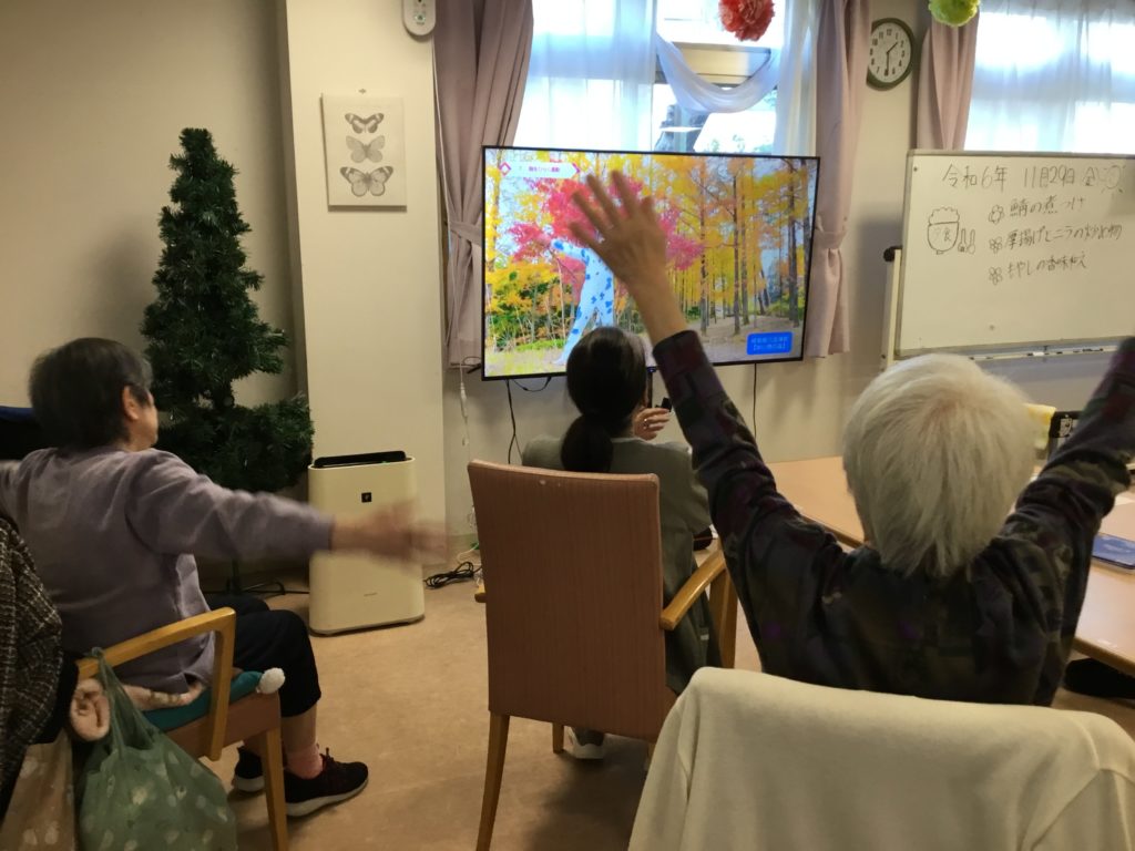 朝のレクリエーション同様、最初は入居者様大好きなラジオ体操から行います!僕も入社するまで知らなかったのですがラジオ体操は第3まであるんです!💪