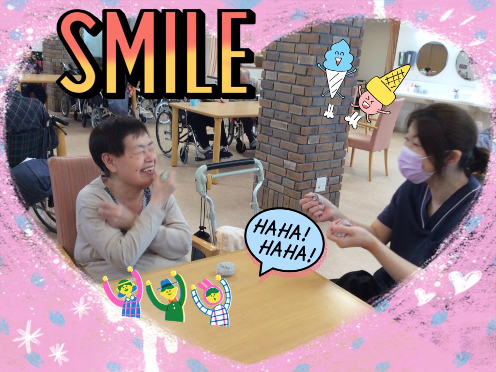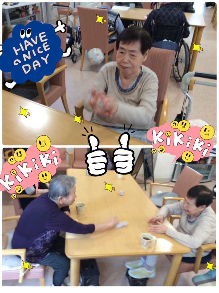 片手でやってみたり相手の手の中に入れるゲームをしたり最後はホッケーの様な遊びにまで発展しとっても楽しいお手玉タイムになりました〜