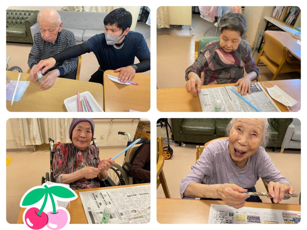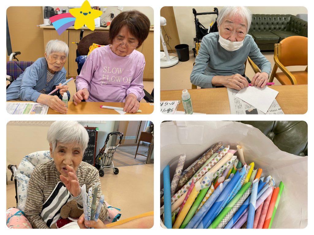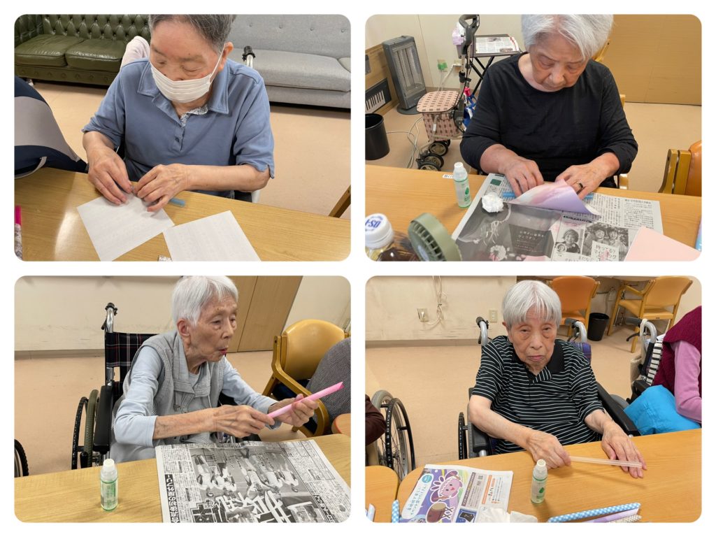 折り紙をストローに巻いて棒にしちゃうというシンプルですがみなさん、真剣にしかも手早く作って下さいました👏