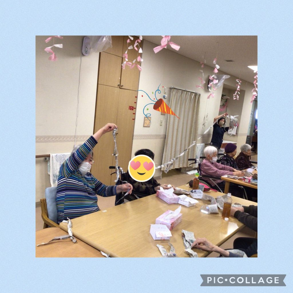 なかなか皆さん真剣です😊つぎいはビリビリ破いて長く長くー