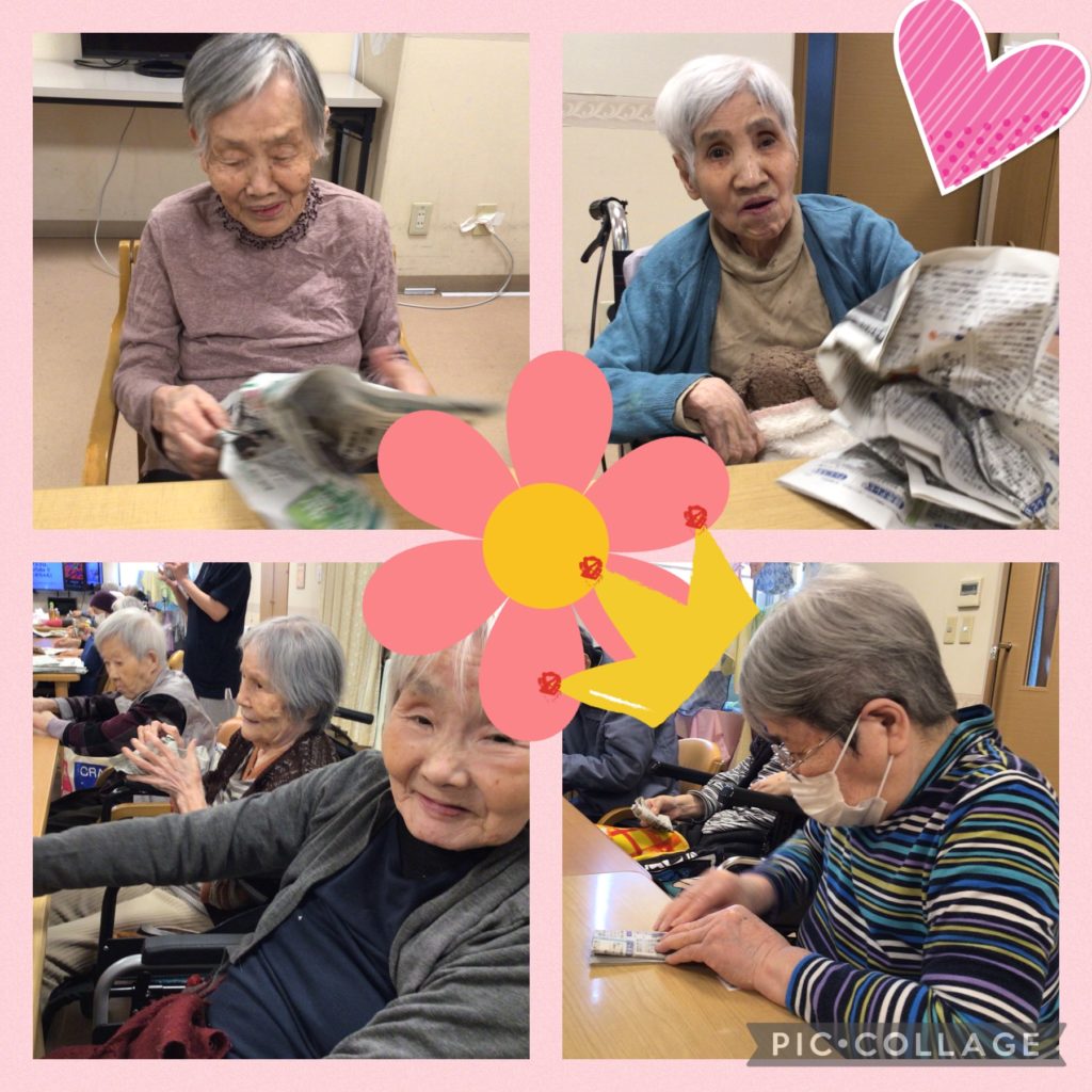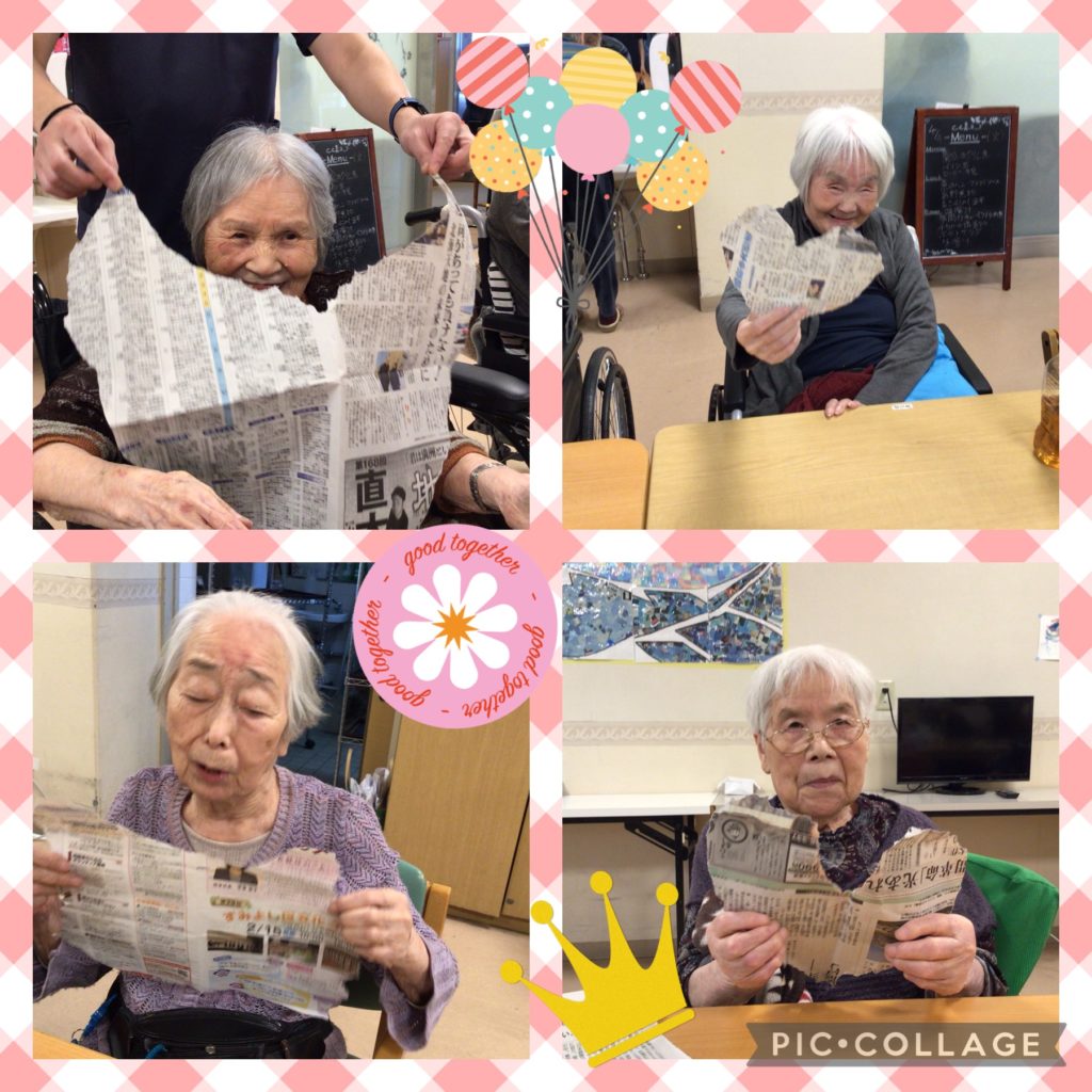 春を楽しみましょ〜、という事で今日は新聞紙で色々と遊びました💕