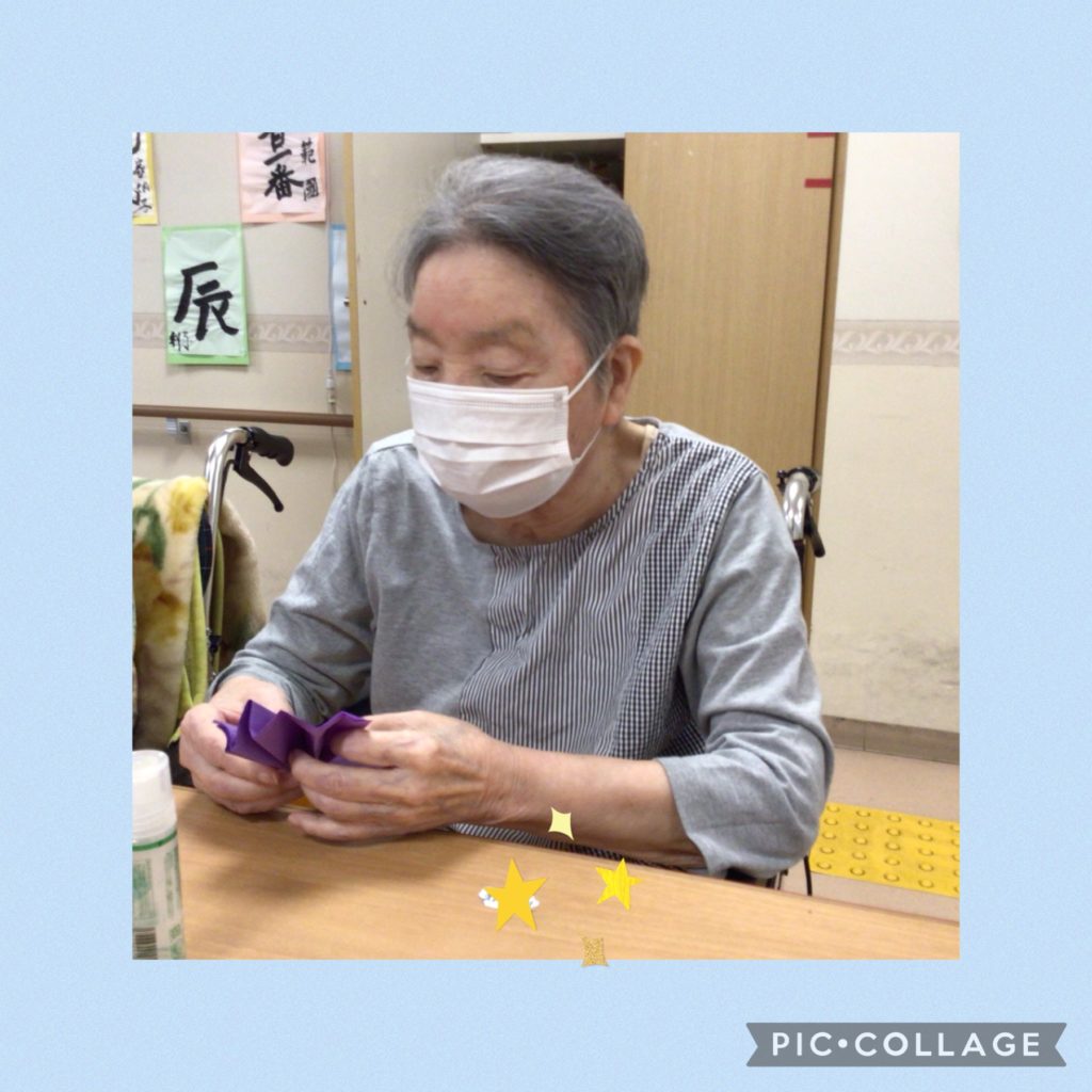 ガクを折り紙で切りお花紙に貼り付けて紫陽花出来上がりました!
