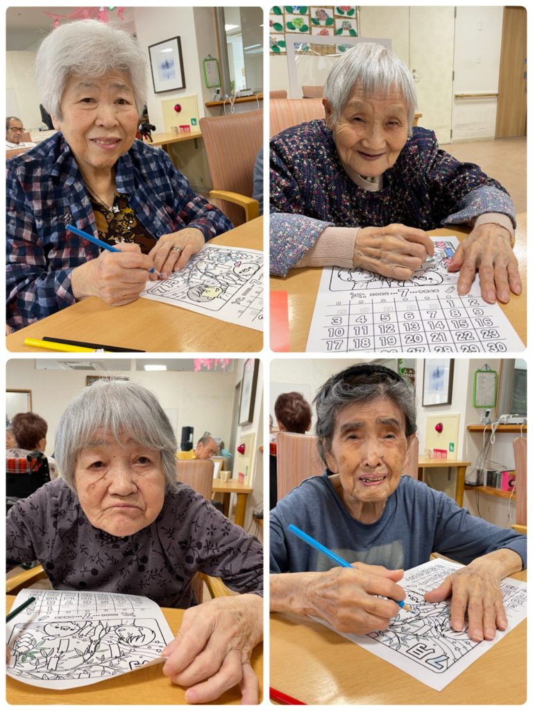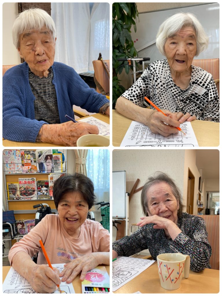 7月は七夕があるので選んでみました🥰細かい所もあり皆さん真剣に塗っていますがカメラを向けると笑ってくれる人が沢山います😍😍