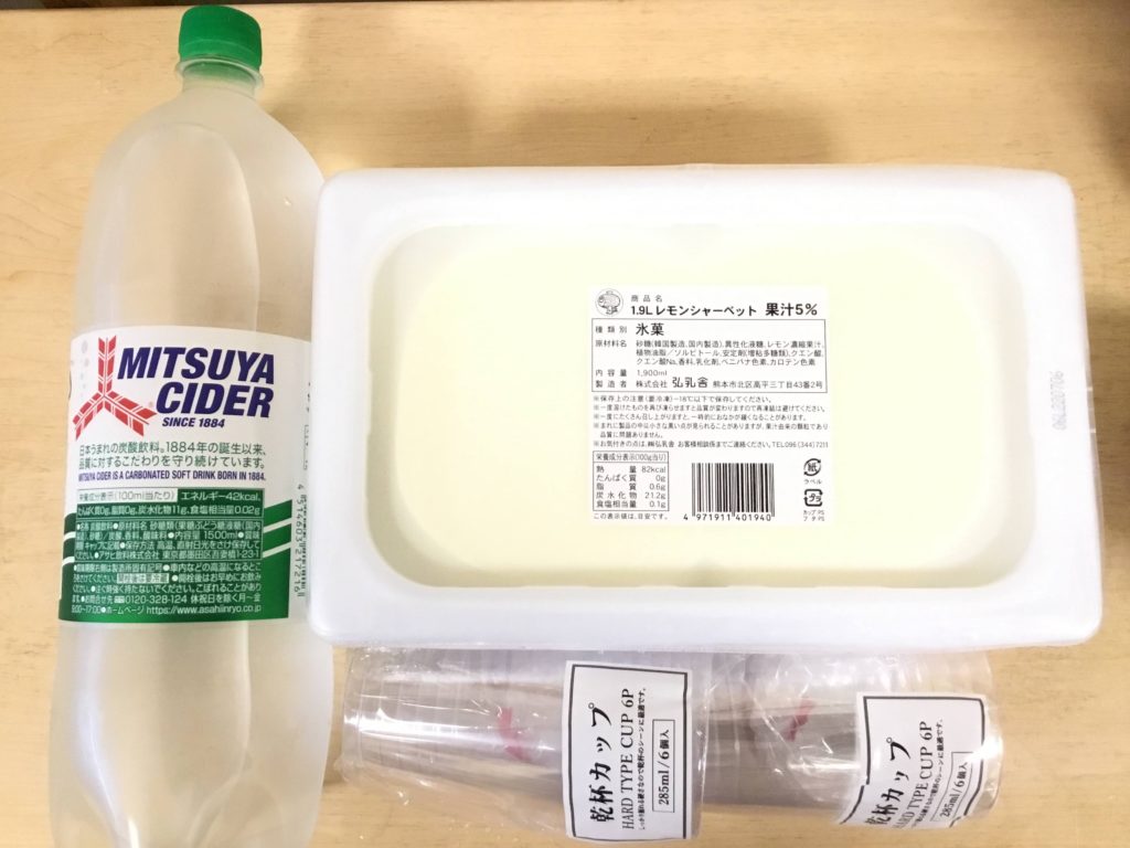 最近、暑い日が続いてるから冷たい飲み物が飲みたいねとまだこさんと相談し三ツ矢サイダーとレモンシャーベット🍋を使ったジュースを作りました😁💕✋