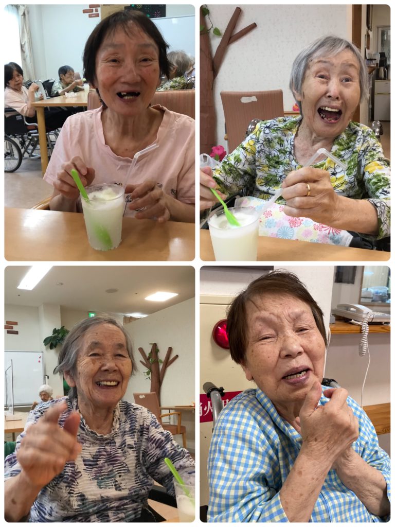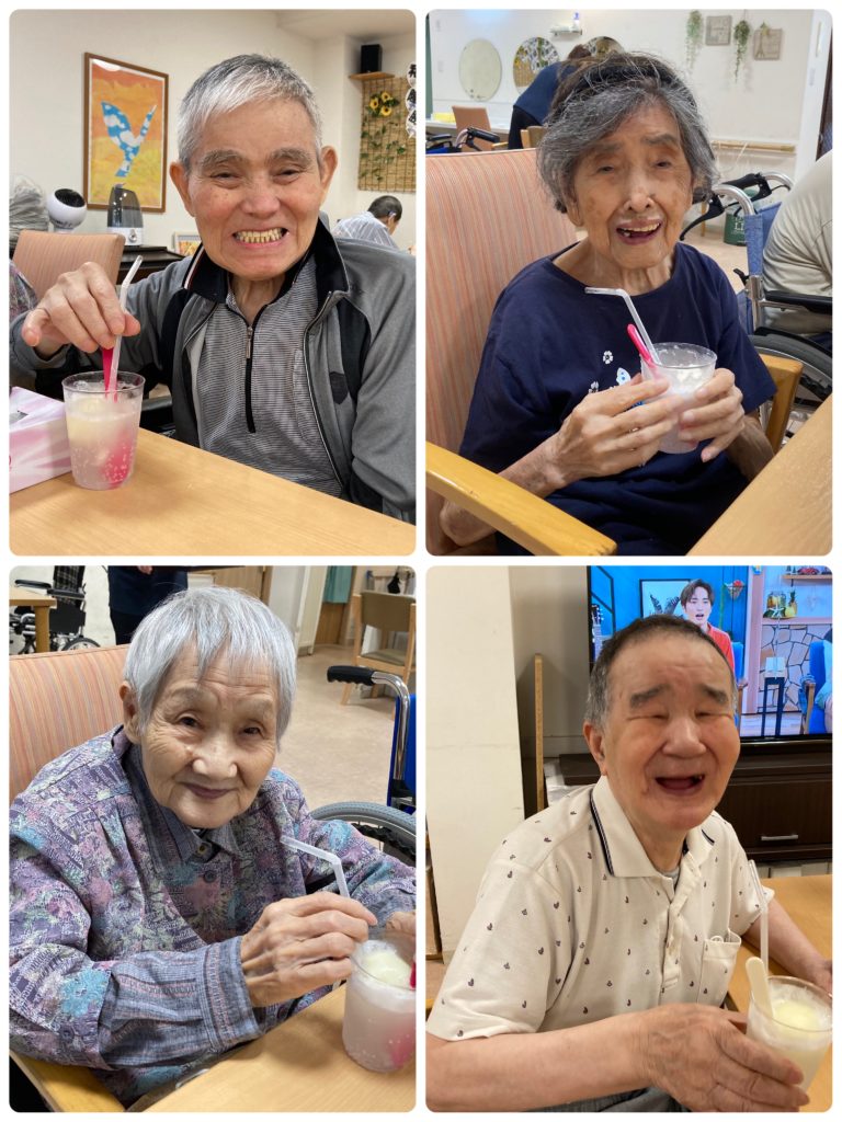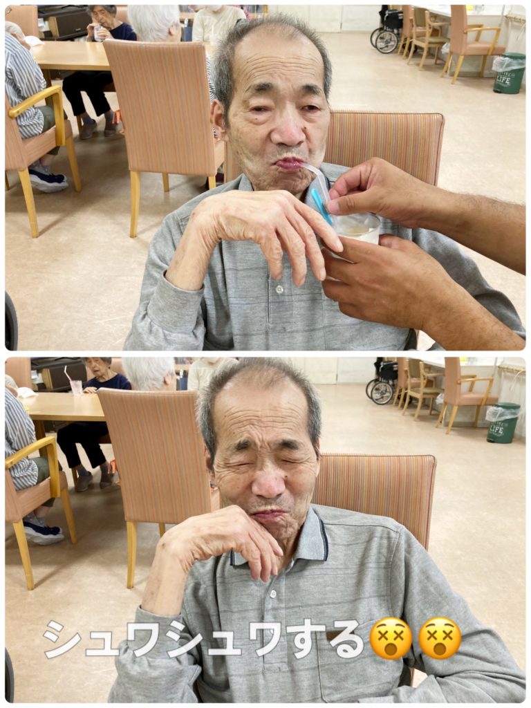 ○尾さんは炭酸にビックリして飲んだ瞬間この表情😊🎶反応がとても可愛く周りの利用者さんも大笑い😆😆