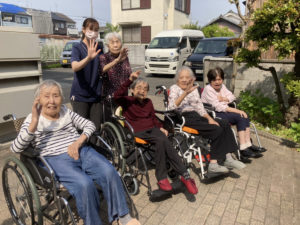 先日はポカポカ陽気だったのでご利用者様方々と外の空気を吸いに行きました