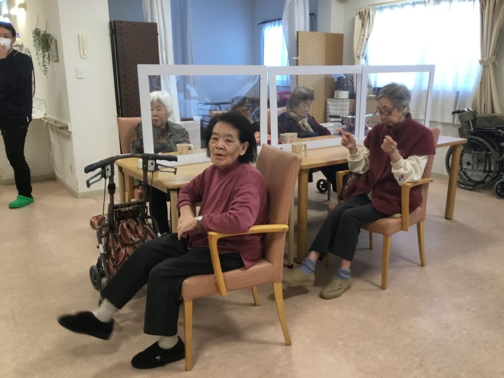 今回は毎日皆さんと一緒に夕方に行っている足の体操のご様子をご紹介したいと思います!