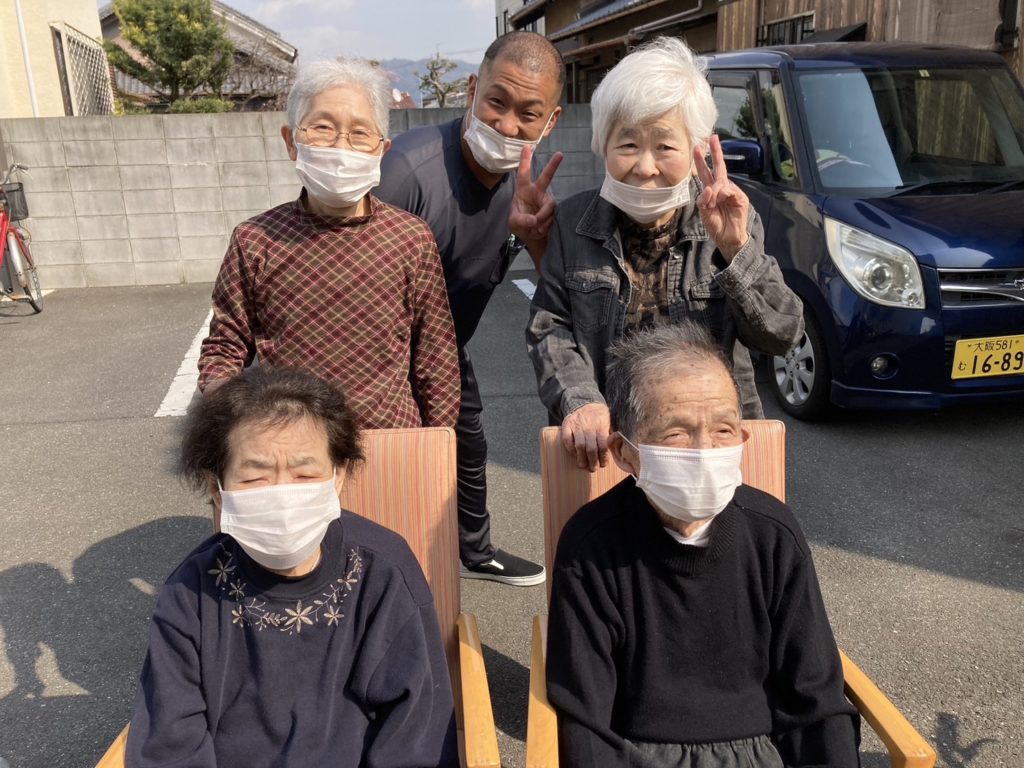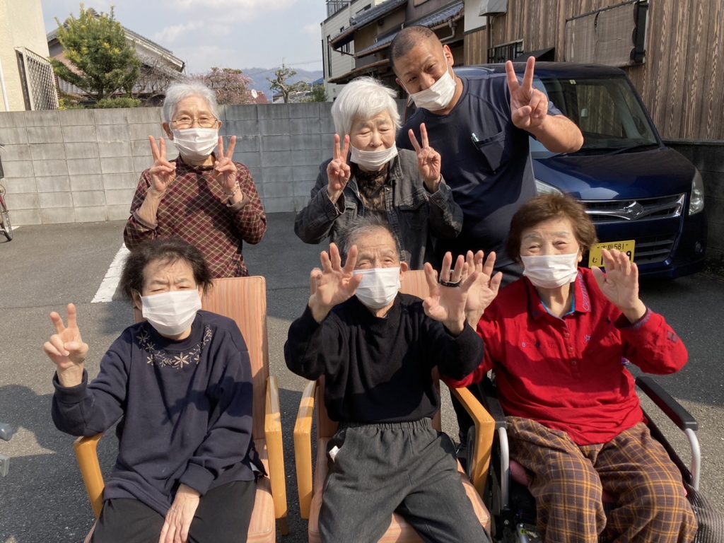 先日、天気も良かったので外に出て日向ぼっこしました😁😁久しぶりに外の空気にふれ、利用者さんも喜んでおられました😁💕