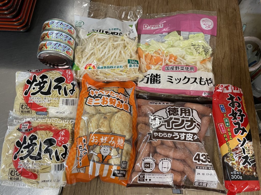 そして「ウィンナー」「お好み焼き」「焼きそば」です。材料はこちらです。
