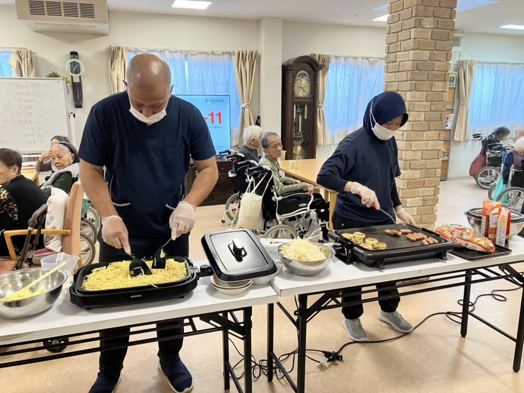 ホットプレートで焼いていきます。フロア内はソースのいい匂いがして、みなさんワクワクしながら待って頂きました。「まだかな?」なんて声も聞こえてきてましたよ😋