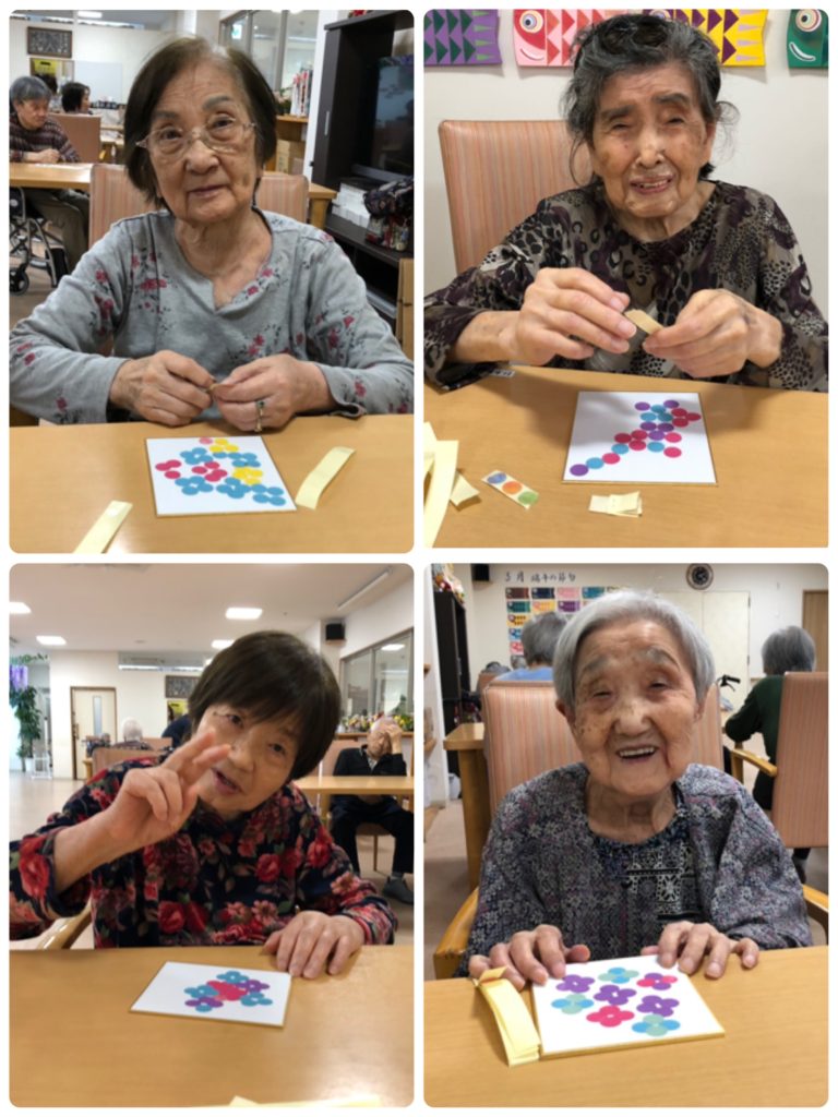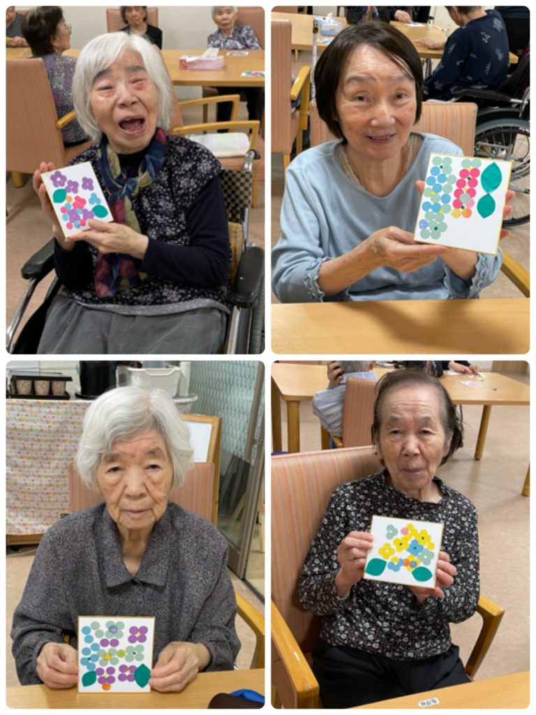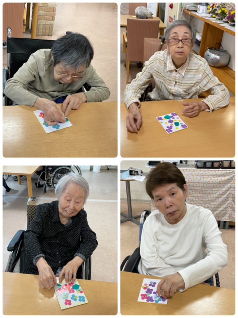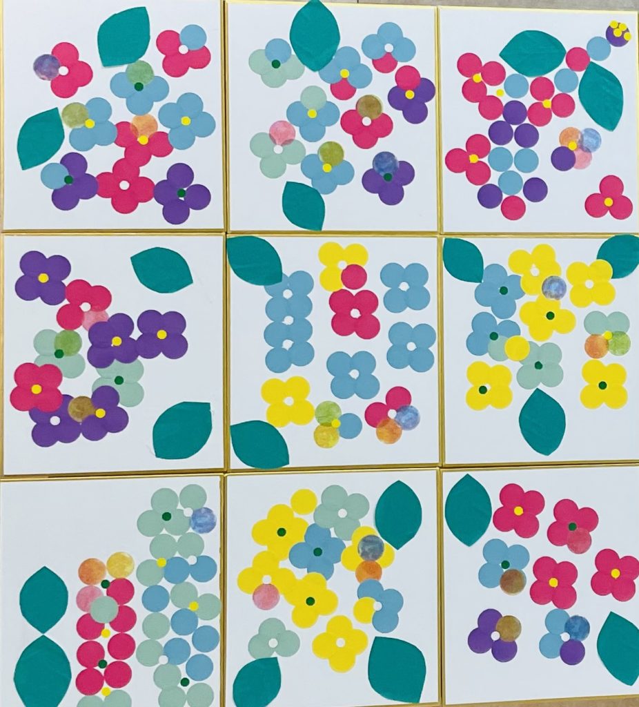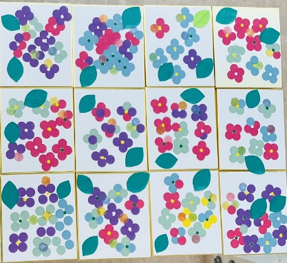 そして、その4枚の真ん中に小さい丸シールを貼って、葉っぱを貼ったら、もう完成👏